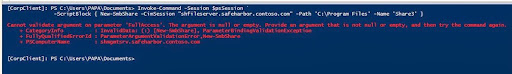 The proxy cmdlets use a Permission.csv file to map users-resources-access permissions. In this sample, Corporate\User1 will be allowed to access the named shares on the file server. This is configured during creating a new smbshare on the fileserver, when Corporate\PAPA connects to the constrained endpoint.
