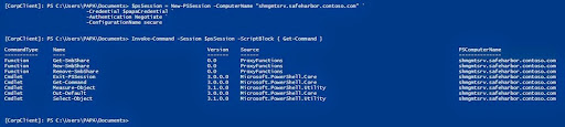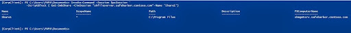 A startup script on the endpoint exposes only a relevant set of functionality to the incoming user. In this case, Corporate\PAPA is allowed access to the proxy equivalent of smbshare cmdlets to Create/Retrieve/Remove shares on the workload file servers.